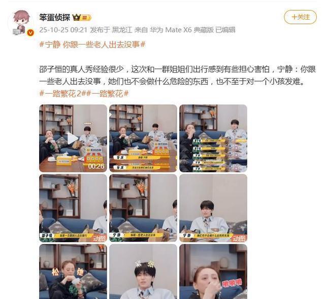 据网日爆料,事情发生在节目组在北京候机准备出发时。邵子恒作为团队中的“忙内”,坦言自己“第一次跟别人出去旅行,好害怕”,尤其担心和资深女艺人相处时说错话、做错事,甚至引发矛盾。他还透露,父亲曾特别嘱咐他要“照顾好姐姐们”,尤其点名宁静——这番话背后,不难看出新人面对影后级阵容时的忐忑。